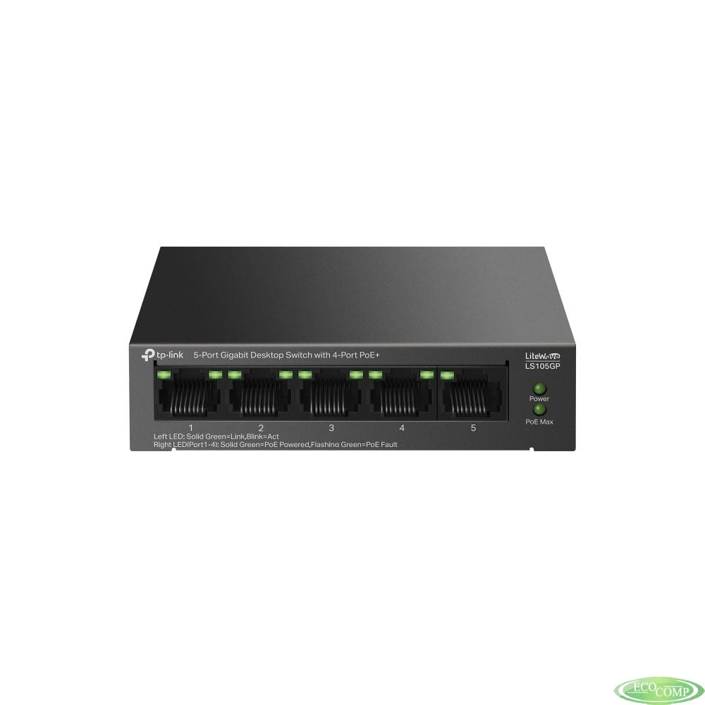 TP-Link LS105GP Настольный коммутатор с 5 гигабитными портами (4 порта PoE+)