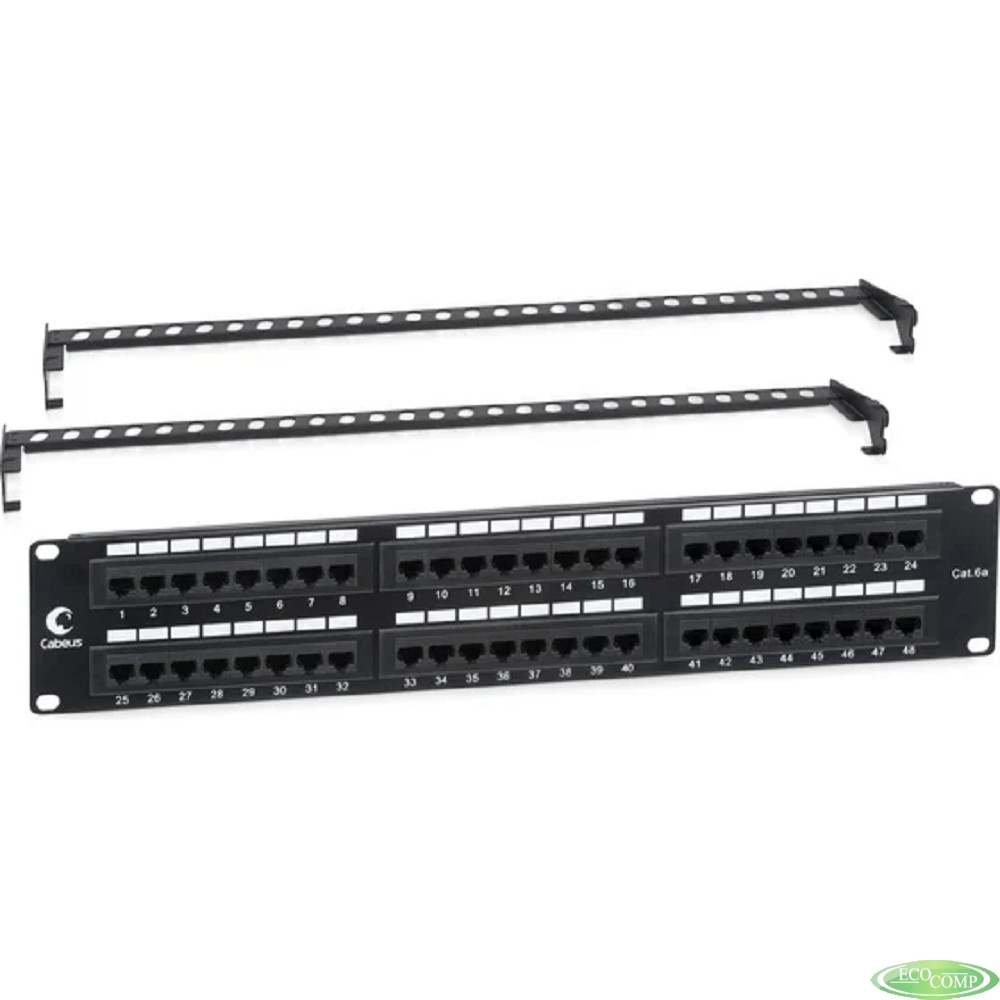 Cabeus PL-48-Cat.6a-Dual IDC Патч-панель 19" (2U), 48 портов RJ-45, категория 6a, Dual IDC, с задним кабельным организатором