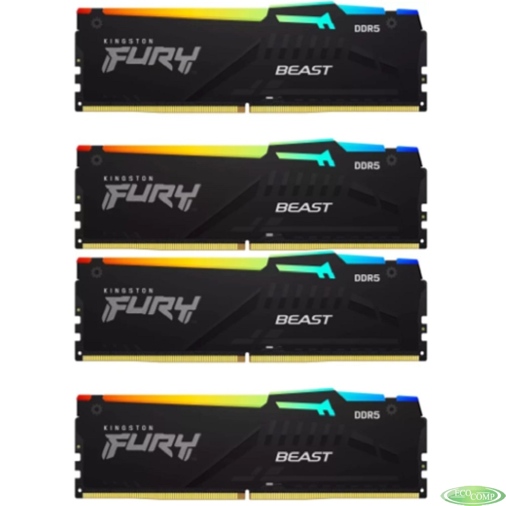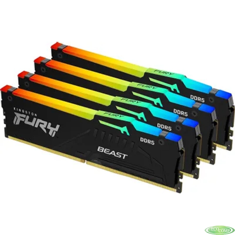 Память оперативная/ Kingston 64GB 5200MT/s DDR5 CL40 DIMM (Kit of 4) FURY Beast RGB XMP