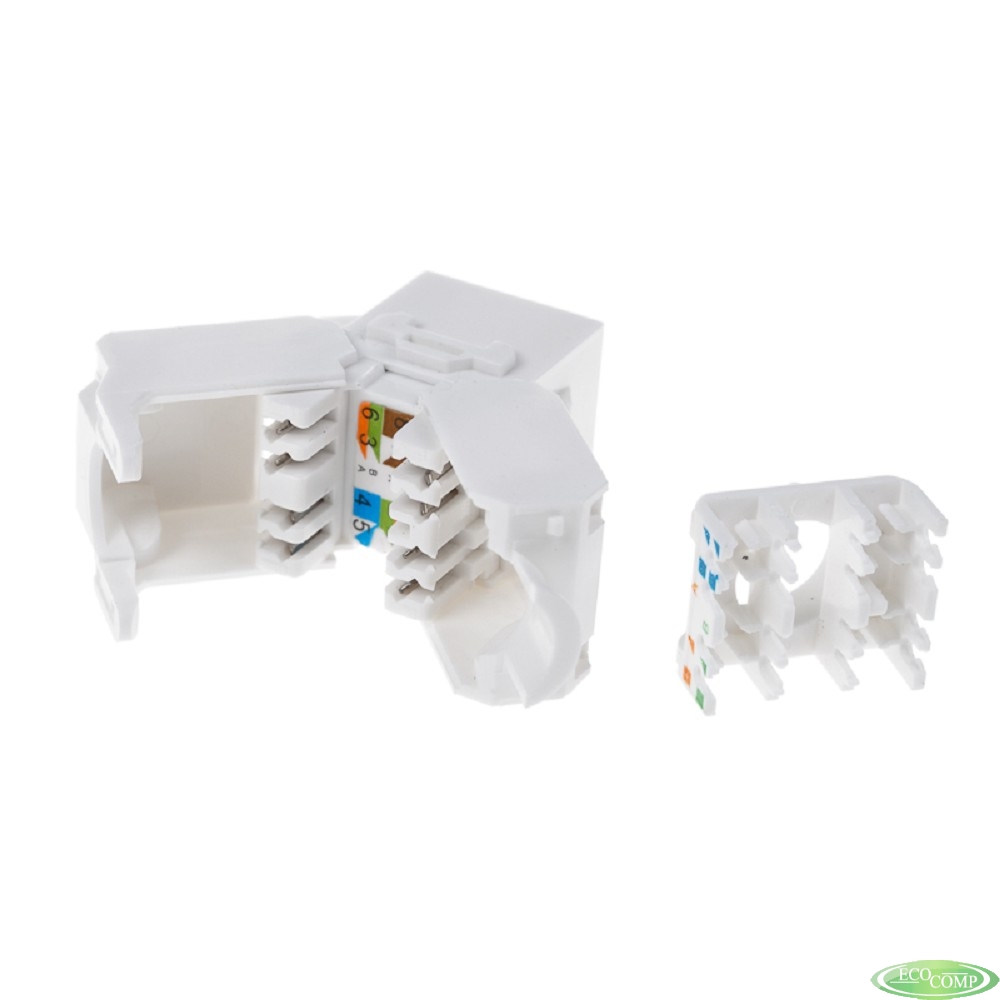 Rexant (05-1052) Модуль Keystone Jack RJ-45(8P8C) UTP, CAT 6, тип 180 градусов, самозажимной, белый
