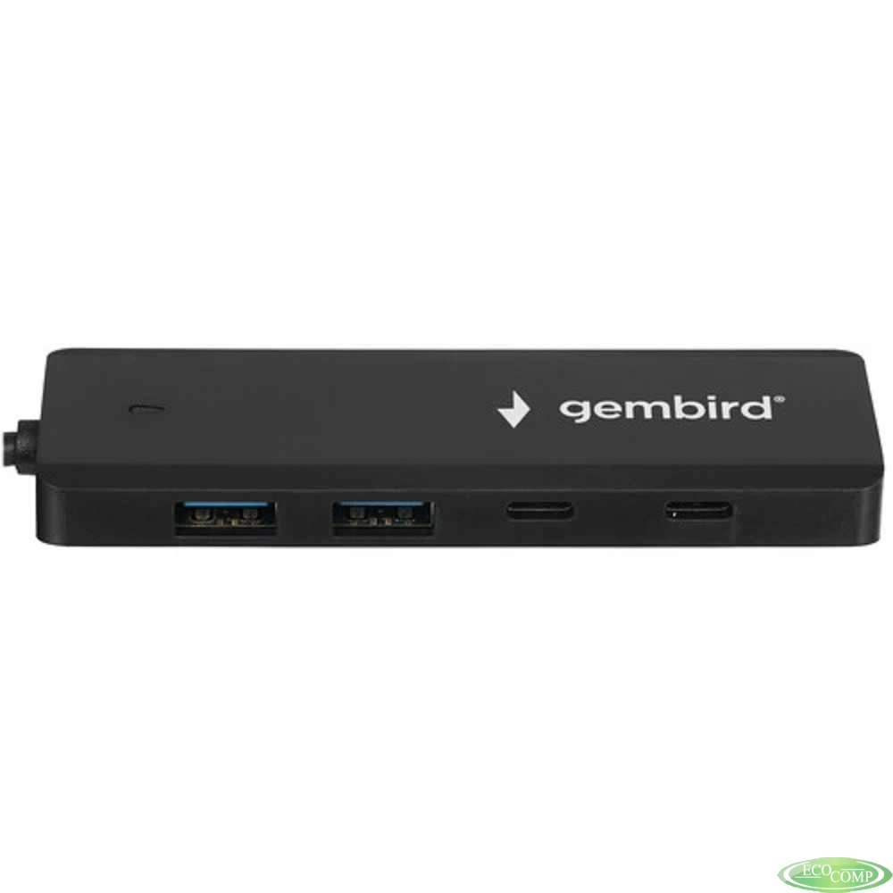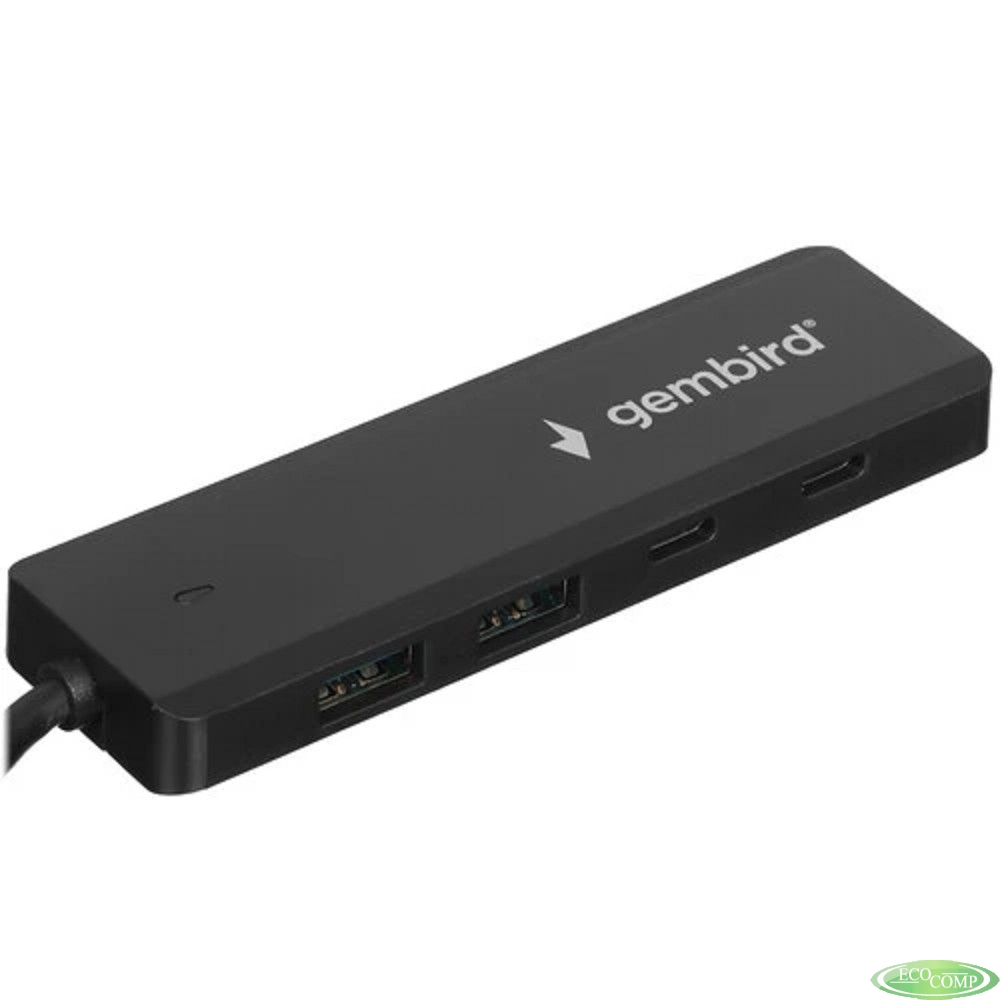 Gembird Разветвитель USB3.1 2xUSB, 2xType-C, с доп.пит (Type-C),кабель Type-C 19см, черный, коробка (UHB-C425)