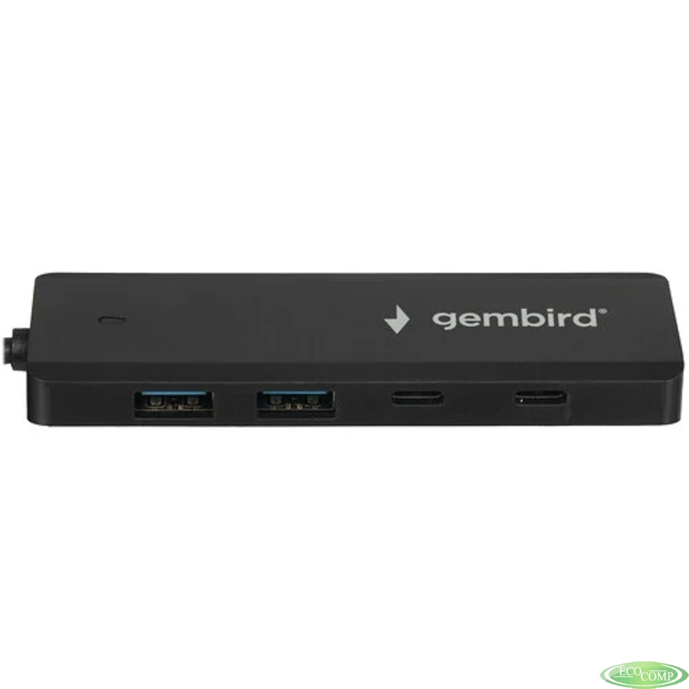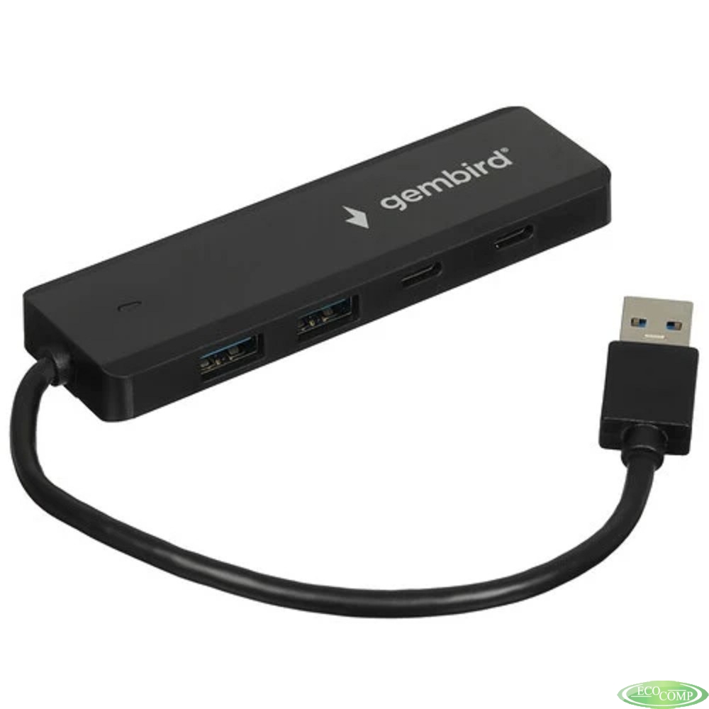Gembird Разветвитель USB3.1 2xUSB, 2xType-C, с доп.пит (Type-C), кабель USB 19см, черный, коробка (UHB-C415)