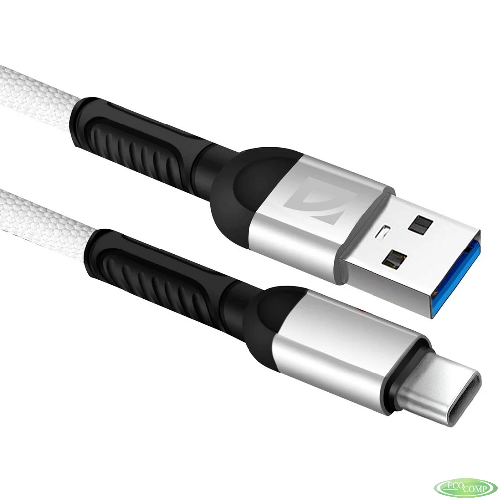 Defender USB кабель F167 TypeC, white, 1м, 2.4А, ткань, пакет (87103WHI)