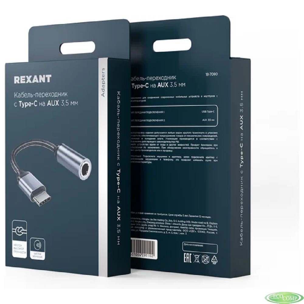 Rexant (18-7080) Кабель-переходник c USB-C на AUX 3,5 мм