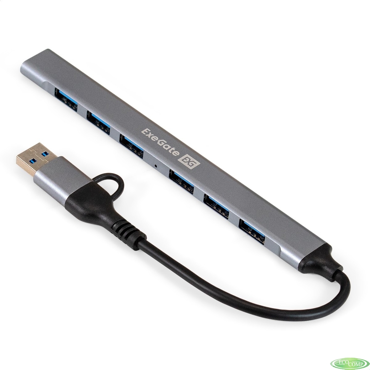Exegate EX299790RUS USB-Хаб (концентратор) 7-в-1 ExeGate DUB-761C3 (кабель-адаптер USB Type-A + Type-C --> 6xUSB2.0, 1xUSB3.0, Plug&Play, серебристый)