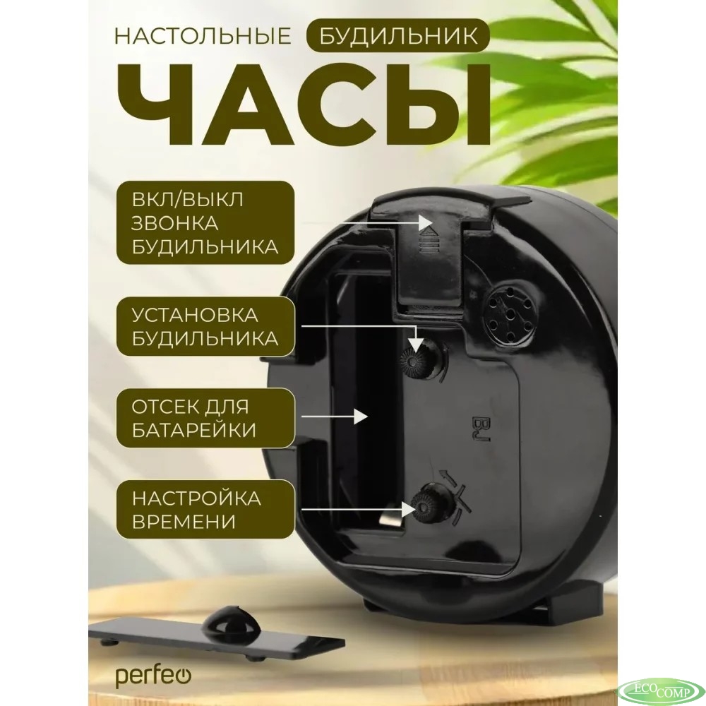 Perfeo Quartz часы-будильник "PF-TC-023", круглые, чёрные