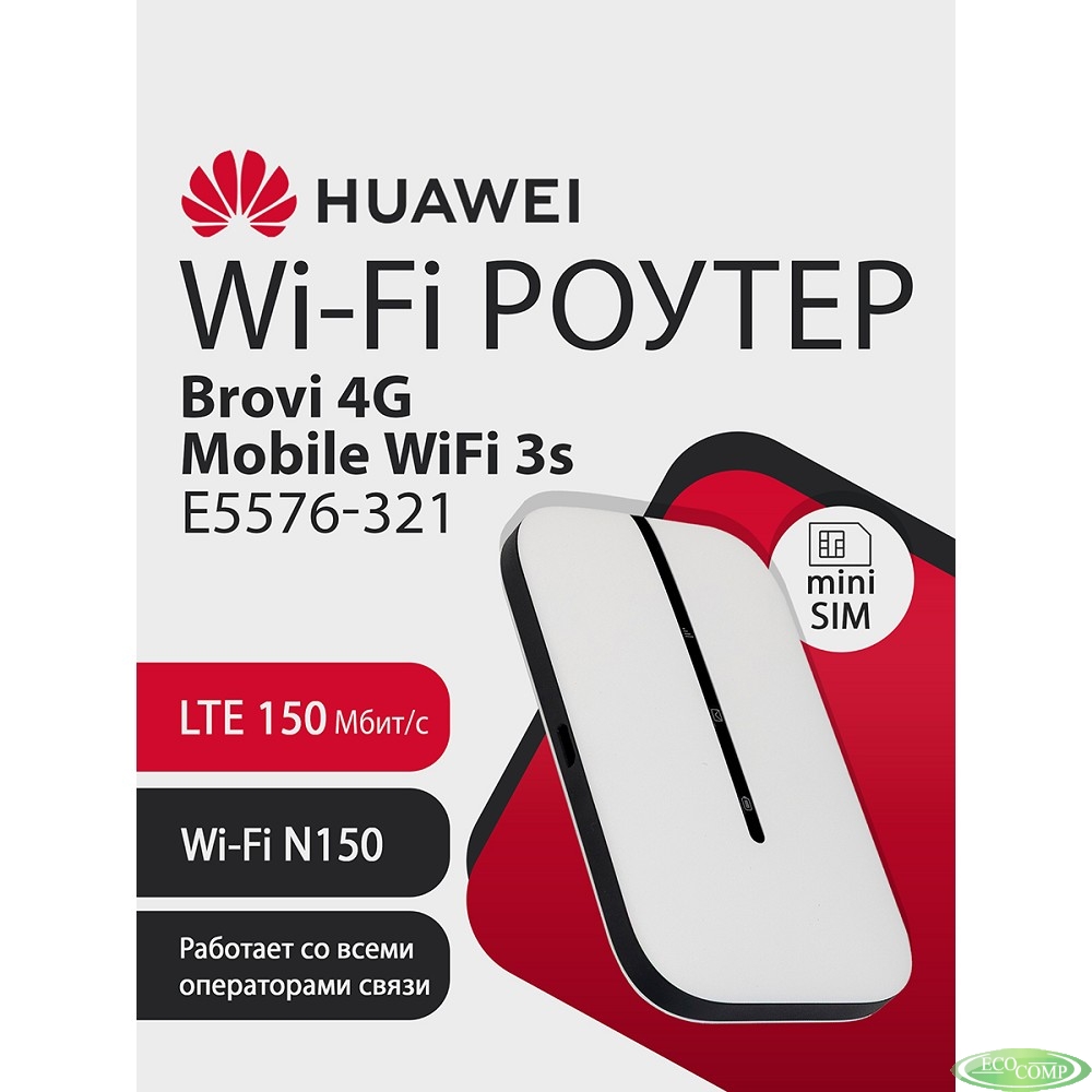Повреждение упаковки 51071VPL E5576-321 Brovi 4G Mobile WiFi 3s Портативный Модем 3G/4G Mobile WiFi 3s, LTE cat.4., 2FF Mini-SIM, 1500 mAh