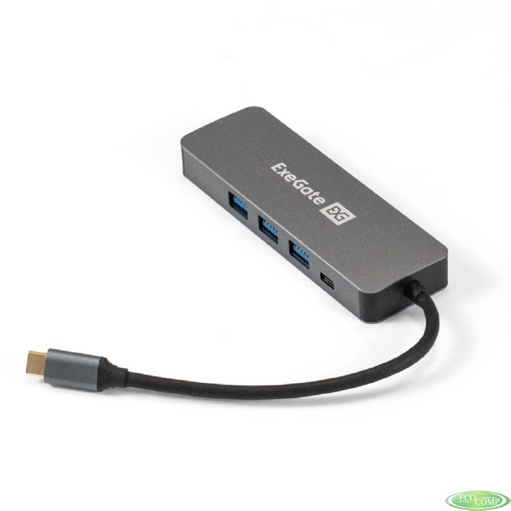 Exegate EX293984RUS Док-станция ExeGate DUB-31C/PD/H (кабель-адаптер USB Type-C --> 3xUSB3.0 + PD 60W + HDMI 4K@30Hz, Plug&Play, серый)